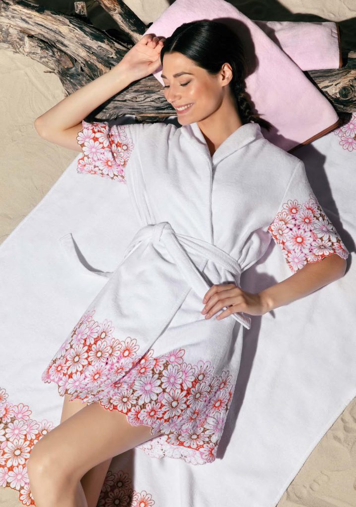 Gli articoli sono prodotti in preziose spugne idrofile a riccio, spugne cimate, nido d’ape, arricchiti da ricami, stampe, applicazioni, rifiniture, dettagli, sempre in nuove e diverse varianti colori e con modellature che spaziano da quelle più classiche a quelle più particolari.